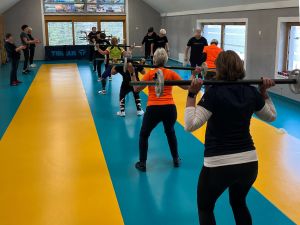 Vključene so tudi vaje za izboljšanje koordinacije, ravnotežja in stabilnosti, ki so ključnega pomena za ohranjanje samostojnosti in varnega gibanja v vsakdanjem življenju. Vadba poteka v umirjenem tempu in je prilagojena zrelim letom ter individualnim sposobnostim.